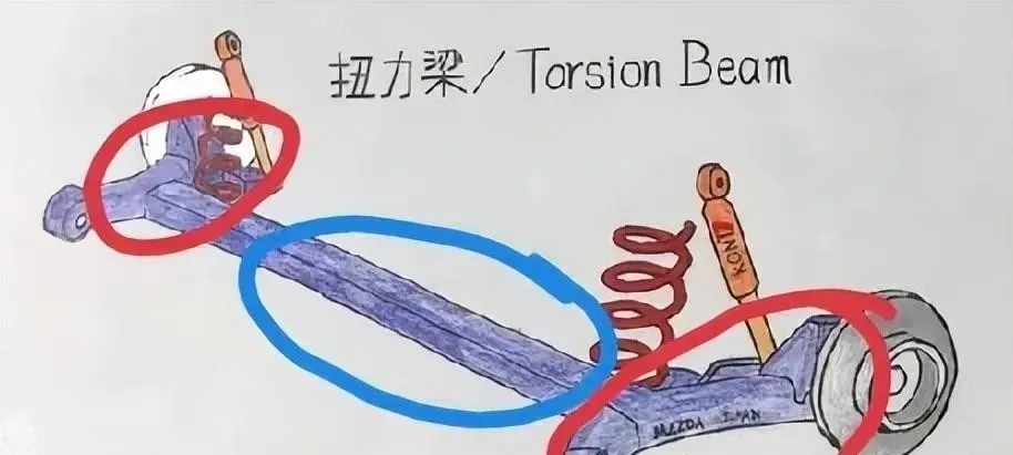扭力梁式懸掛屬于半獨(dú)立懸掛的一種,它看似與卡車上使用的非獨(dú)立懸掛相似,但關(guān)鍵在于,連接車輪的梁(紅色標(biāo)記部分)能夠相對(duì)于中間的桿(藍(lán)色標(biāo)記部分)進(jìn)行扭動(dòng),從而使兩個(gè)車輪能夠在一定程度上獨(dú)立運(yùn)動(dòng)。其優(yōu)點(diǎn)包括:價(jià)格極為低廉,且極度節(jié)省空間。然而,缺點(diǎn)也同樣顯著:操控性和舒適性大打折扣,且無法進(jìn)行直接的四輪定位。東莞新能源產(chǎn)業(yè)橡膠硅膠配件定制生產(chǎn)廠家