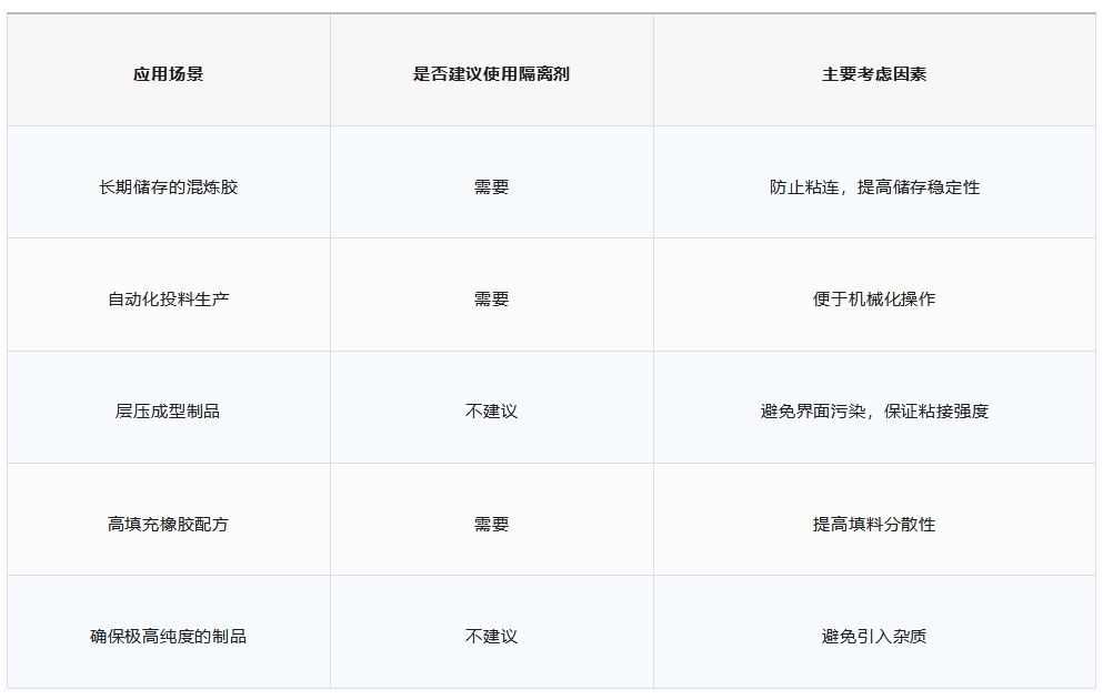 隔離劑的存在有助于防止膠料團(tuán)聚,使得后續(xù)加工時(shí)的剪切力更均勻,避免混煉過程中因局部膠料過度剪切而導(dǎo)致的塑性不均。
