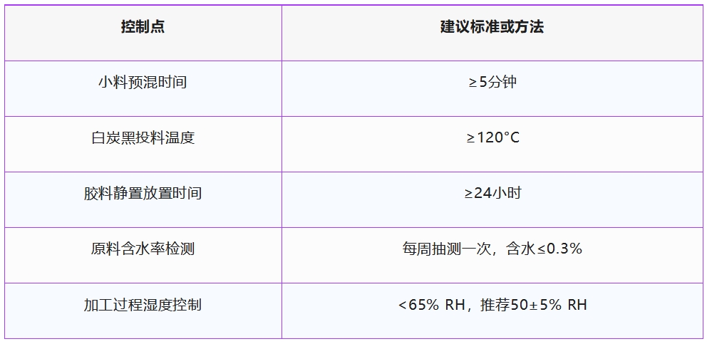 定期檢測(cè)原料含水率:特別是吸濕性強(qiáng)的原料,如白炭黑、硬脂酸等。