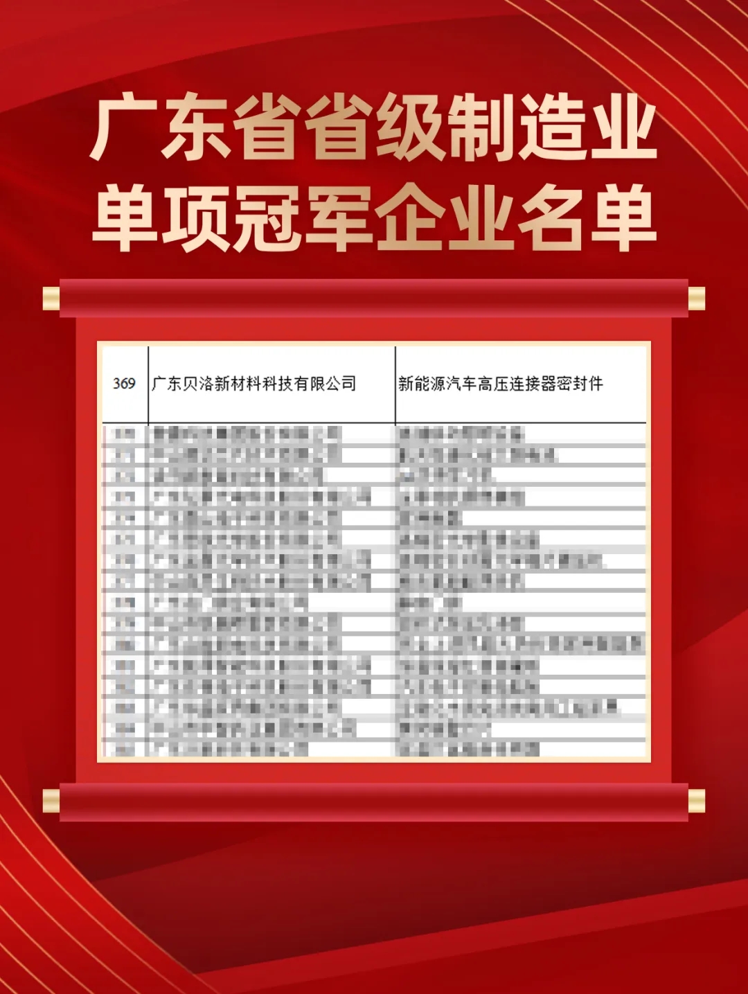 2025年12月31日,廣東省工業和信息化廳發布了《2025年廣東省省級制造業單項冠軍企業及第一批復核企業通過名單的公示》,廣東貝洛新材料科技有限公司成功入選省級制造業單項冠軍企業。