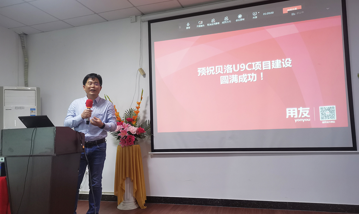 會議中,貝洛新材領導發表講話,要積極配合本次項目的開展,要求各職能部門員工務必全力以赴按照項目實施要求予以配合,確保信息化項目成功上線。