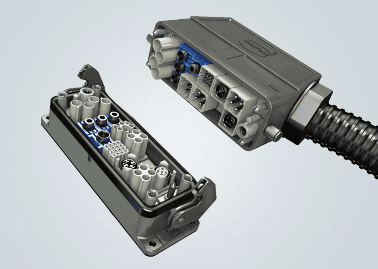 在去中心化系統中,硬連線不是一個可行的選擇。在現代生產車間,改變布局甚至更換機器的部件是一種常見的做法。連接器使工人無需專門工具即可輕松快速地完成這些調整,從而避免代價高昂的停機時間。最高效的連接器是模塊化連接器,它允許將多個連接點組合到一個外殼中。下一級連接器模塊化允許定制模塊本身,確保盡可能高效地使用所有空間。