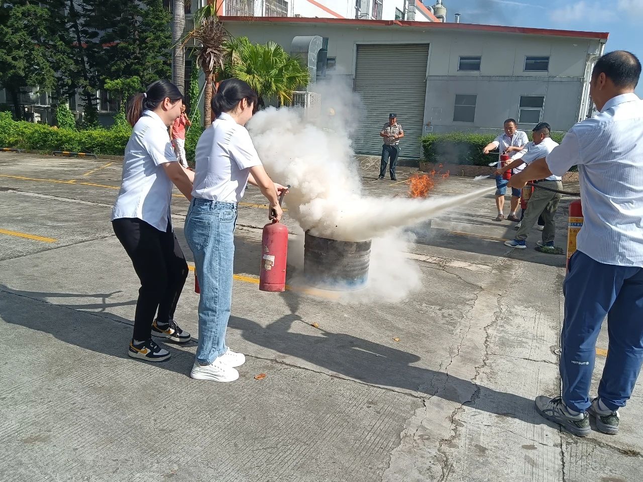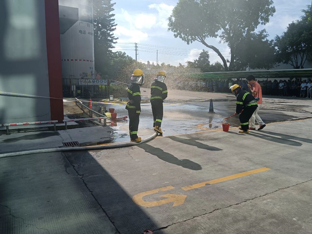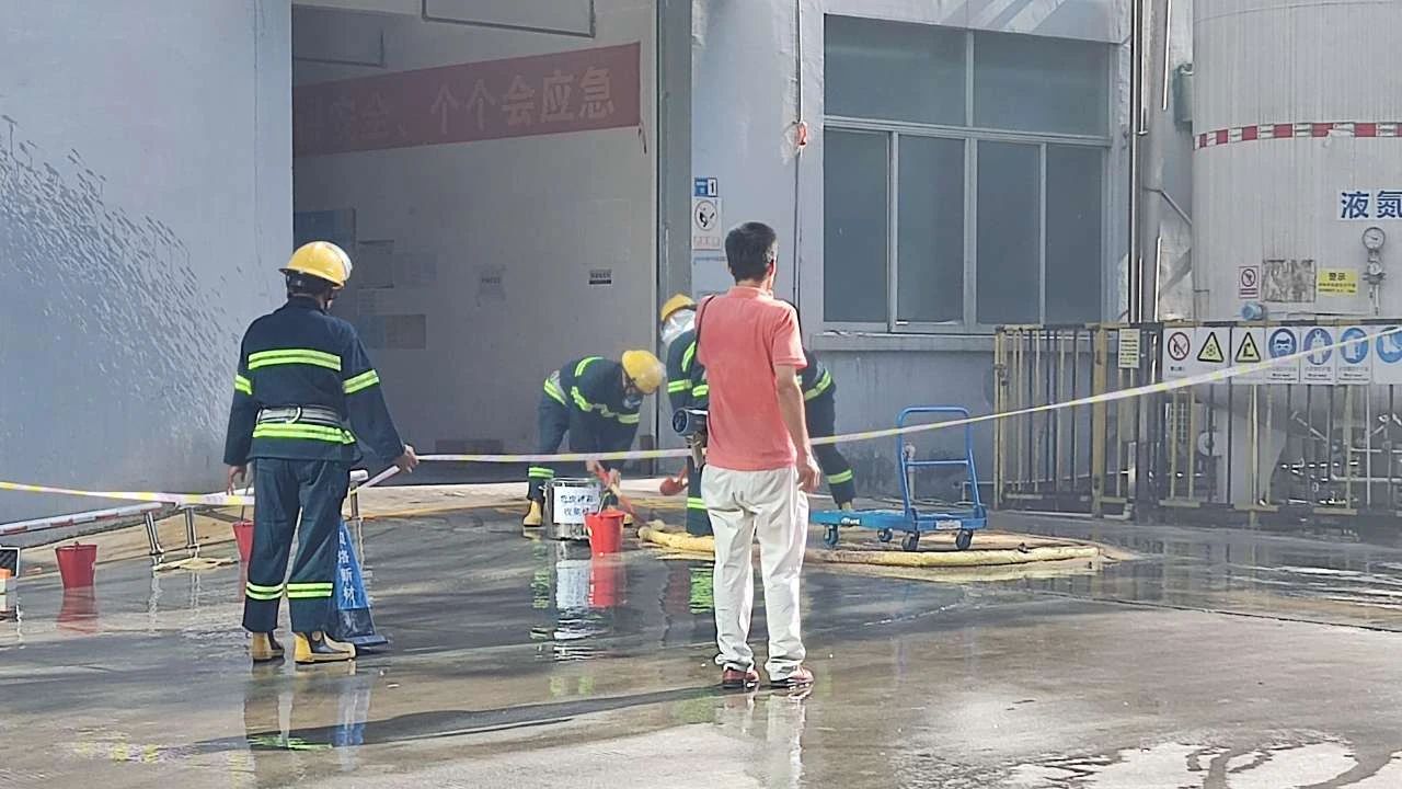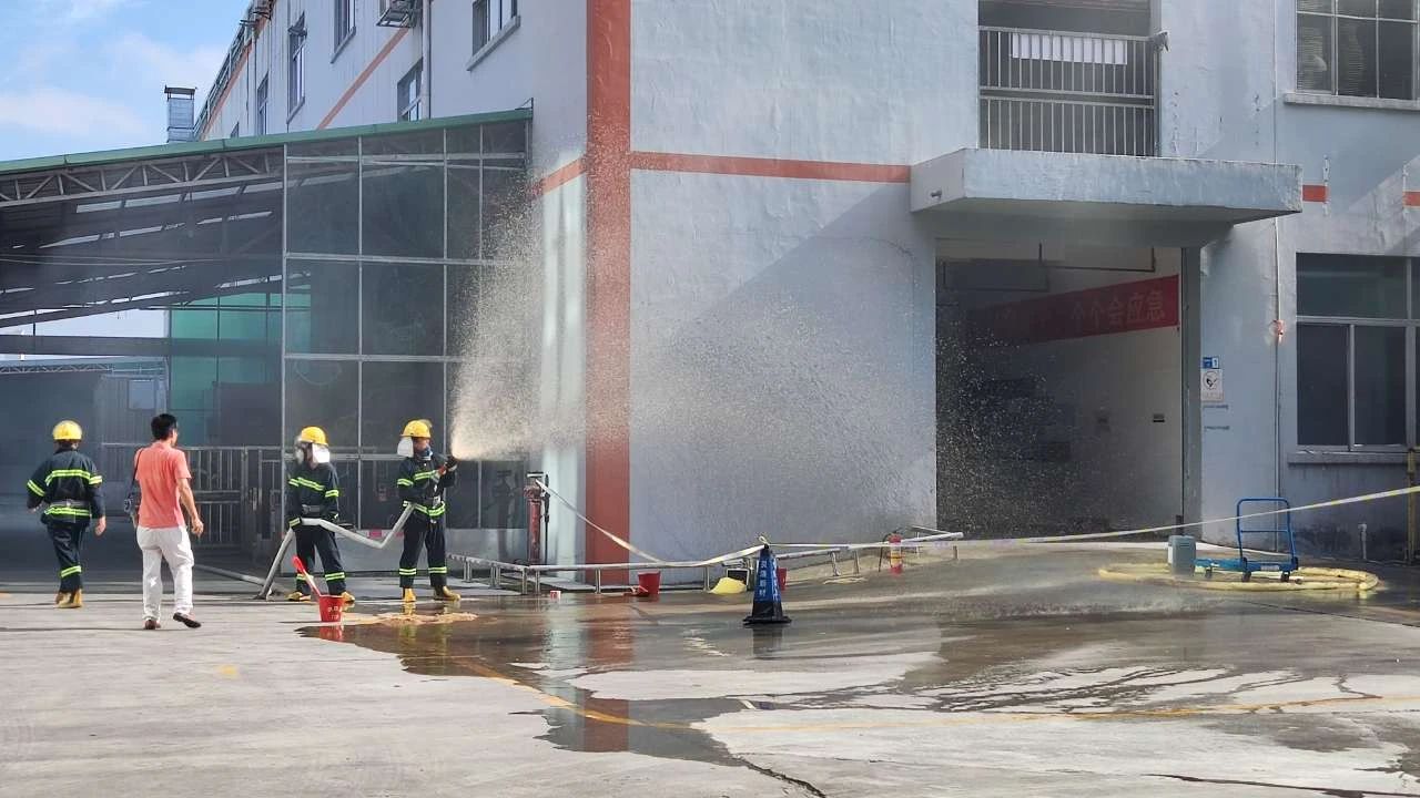 本次演練模擬廠區生產車間發生化學品泄露并著火,廠區工人發現災情后,立刻啟動火災應急預案,快速響應滅火救援和開展人員疏散,經過緊張有序的救援,化學品和火勢得到及時撲救,演練取得了預期效果。